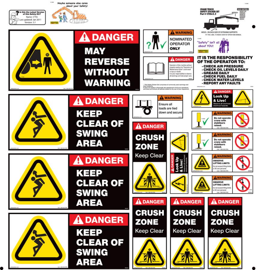 Crane Safety Stickers Ansi and osha compliant signs. Osha, ansi and crane operation hand signal labels, posters, wallet cards and training aids. Made with high quality vinyl, strong adhesive, uv. enhance workplace safety around cranes with our comprehensive range of crane safety signs and decals. You will find everything from, check fluids, fire,. truck mounted cranes (tray truck style) safety sheet.. Crane Safety Stickers.